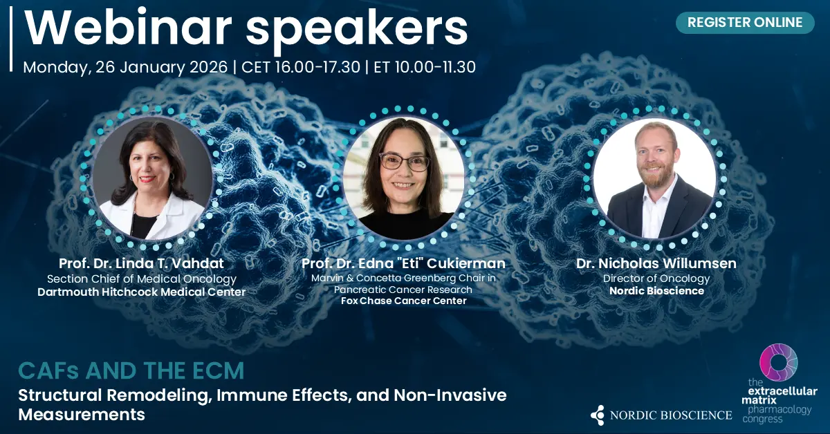 - Non-Invasive ECM-Derived Biomarkers of CAF and Immune Cell Activity in Clinical Cancer Research | Dr. Nicholas Willumsen (Nordic Bioscience) — 20 min