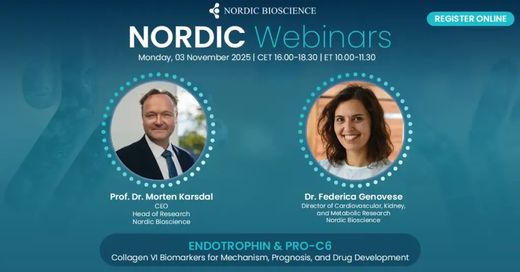Together, these assays provide complementary insights: PRO-C6 reflects total collagen VI formation, while Endotrophin isolates the signaling activity of Endotrophin, offering a more nuanced understanding of fibrotic processes. This pairing enables diagnostic, prognostic, and pharmacodynamic readouts and supports regulated deployment on diagnostic platforms.